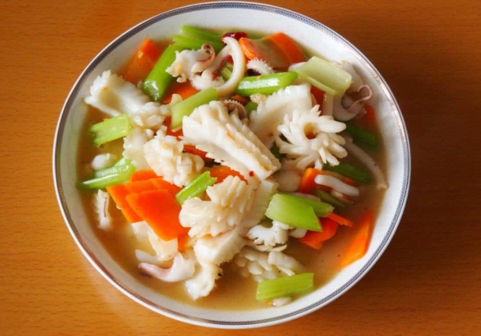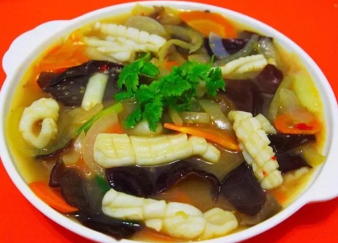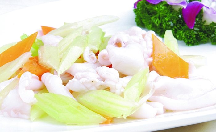 A: 就像前面說的,嚴格來說,傳統"生炒花枝"是用肉厚、口感Q彈帶點脆度的花枝(烏賊)。